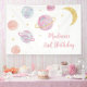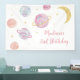 Este diseño adorable presenta planetas acuarelas pintadas a mano con estrellas de Relieve metalizado de oro falsas.