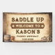 ¡Desata el espíritu del salvaje oeste con nuestro singular y cautivador cartel de cumpleaños occidental de Cowboy! Diseñado con la temática exuberante de la frontera inamovible, este banner de bienvenida invita a los invitados a "Ensillar y divertirse" mientras se unen a ustedes para una celebración de cumpleaños como ningún otro.