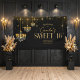 Celebre con un estilo estrellado con esta glamorosa pancarta de 16 años de dulce, inspirada en el brillo y el glamour de un antiguo evento de Hollywood. Con una lujosa paleta de colores negro y dorado, este elegante diseño está adornado con brillantes lámparas de cuerda, una llamativa lámpara de araña y falsos acentos purpurinas para lograr el máximo impacto. Perfecto para iluminar el foco de atención de su honorario de evento, este patrón es totalmente personalizable con los detalles de su fiesta y hace una asombrosa primera impresión para una noche que recordar. Busque ID1108 para ver otros productos de coordinación en este conjunto de diseños. NOTA: el diseño incluye algún contenido generativo.