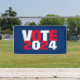 Votar 2024 es en rojo y blanco con un cartel azul.