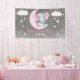 Personalizable de fondo chica elefante con luna y estrellas para una ducha de bebé chica, personalizable con nombre fecha et. Buena idea para la decoración de las mesas de postre.