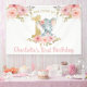 Personalice este cartel de fondo de Elefante de bonito floral rosa de primer cumpleaños con sus detalles fácil y rápidamente, simplemente presione el botón personalizar it para reorganizar y formatear el estilo y la ubicación del texto. Es perfecto para recibir a los clientes y para colocarse detrás de la mesa de postres. ¡Artículos coincidentes disponibles en la tienda! (c) El estudio Happy Cat Studio.