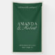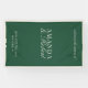 Wedding welcome banner sign featuring elegant classy typography in old money style on green color background.