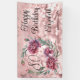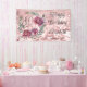 Elegant pink, mauve and burgundy carnations floral design "80th Birthday Party" design featuring a floral open-ended wreath of white-frosted carnations.