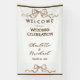 This Elegant Romantic Ribbon Wedding Welcome Banner is designed with Warm Brown text on a white background with taupe brown bow accents. The front text includes: WELCOME to our WEDDING CELEBRATION, the Bride and Groom's First Names and Wedding Date. To personalize, simply insert your text into our easy template, replacing the sample. Be sure to view the matching Congratulation Wedding Banner, and Wedding Stationery including a Wedding Invitation and Save The Date Card.