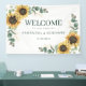Sunflower Eucalyptus Script Wedding Welcome Banner. This cute template featuring beautiful rustic floral bouquet with modern simple typography can be easily customized for your wedding day. Add a date and names of the couple by clicking the "Personalize" button.