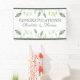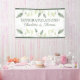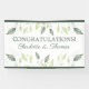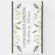 Elegante Banner de Boda con Trim Verde y Hojas Verdes de Color Agua Suave que fluyen desde arriba y abajo. ¡El texto frontal incluye los primeros nombres de la novia y Groom y las GRATULACIONES audaces! Diseño de plantilla fácil de completar. Invitación de boda y accesorios. ¡Disfruta!