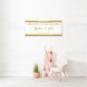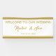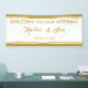 Añada este elegante banner de recepción de bodas a sus accesorios de recepción. Diseñado con el texto: Bienvenidos a nuestro Boda, Los nombres de la novia y el Boda de Groom; y decorado con bandas de acento de color dorado arriba y abajo. Para personalizar, simplemente inserte su texto en nuestra plantilla sencilla, reemplazando los nombres de ejemplo y la fecha. No deje de ver la colección de Bodas con marco de oro elegante completa para la correspondencia entre papel y accesorios.