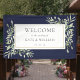 Con delicadas hojas de color agua verde sobre un fondo azul marino, esta tarjeta de bandera de bienvenida botánica boda de moda puede ser personalizada con su mensaje especial de agradecimiento. Diseñado por Thisisnotme©