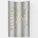 Sencillo, elegante y sofisticado corazón de cuerda de Relieve metalizado dorado en combinación con un fondo de Relieve metalizado plateado de lujo. Banner de bienvenida adorable, moderno, lujoso y único de Tying The Knot - Boda Welcome.