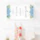 Signo moderno y elegante de bienvenida de boda con diseño floral de color azul hidrangea acuática.
