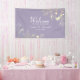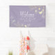 Pancarta vintage, elegante, boho lavender boda morado de bienvenida con dorados plateados y dorados de encaje floral y escritura moderna de caligrafía.