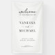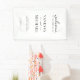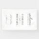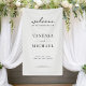 Pancarta de bienvenida boda con elegante diseño de tipografía moderna en color blanco y negro.