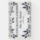 Este elegante cartel de felicitaciones de boda está diseñado con hojas suaves en tonos de azul con toques dorados. El texto incluye: ¡FELICIDADES!, Los nombres de la novia y el novio, y la fecha de la boda. Para personalizar, simplemente inserte sus datos en nuestra plantilla fácil, reemplazando el texto de muestra.