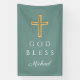 Lona Elegante Cruz Religiosa Verde Bendición de Dios