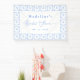 El banner de despedida de soltera con azulejos azules y blancos emana elegancia con su mezcla de elementos de diseño modernos y encanto mediterráneo. Los patrones de azulejos pintados a mano adornan los bordes, creando un marco cautivador para los detalles del evento. Los delicados acentos de acuarela evocan una sensación de tranquilidad y belleza, estableciendo el tono perfecto para una celebración inolvidable.