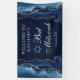 Elegante ágata azul marino y oro decora el lado de esta moderna pancarta de bienvenida Bat Mitzvah fiesta. El nombre de su hija está escrito en un hermoso guión formal bajo la Estrella de David. Perfecto para una moda, elegante familia judía celebrando la llamada de un chica a la Torá.