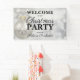Este elegante diseño de Banner de bienvenida Fiesta Navidades de moda presenta un fondo blanco y plateado de bonito con un adorno navideño blanco bauble con una cinta blanca. Personaliza con tu nombre y texto especial de bienvenida.