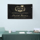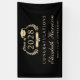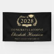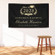 Elegante cartel de bienvenida para una fiesta de graduación en negro y oro que incluye "Clase de" en un ilustracion de corona laurel que incorpora un gorro de grado y diploma, el nombre del graduado en un guión formal, y "Felicitaciones" y su nombre escolar en tipografía moderna clásica.
