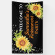 Elegante cartel de fiesta de Jubilación con fondo negro, girasoles florales color agua amarillo y luces de cuerda. Una gran pancarta para recibir a los clientes en el to fiesta. Sólo tienes que añadir el nombre para personalizar. Todo el texto puede ser personalizado si es necesario, ideal para cualquier celebración fiesta, como cumpleaños y aniversarios.