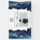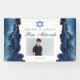 Elegante ágata azul marino y dorada decora el lado de esta moderna pancarta de bienvenida Bar Mitzvah fiesta. El nombre de su hijo está escrito en un hermoso guión formal bajo la Estrella de David. Añadir una foto por encima de su fecha de cumpleaños. Perfecto para una moda, elegante familia judía celebrando la llamada de un niño a la Torá.