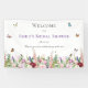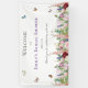 Celebre y dé la bienvenida a sus huéspedes con esta elegante pancarta de bienvenida y bonito. Cuenta con un bonito diseño de flores rosas y violetas con mariposas y abejas que vuelan por ahí. Personalizar todo el texto y la ubicación gráfica según sea necesario.