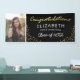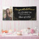 Banner moderno de la fiesta de graduación con un elegante fondo negro que se puede cambiar a cualquier color, una foto del graduado, purpurina brillante de oro, la palabra "felicitaciones" en un falso guión de Relieve metalizado de oro, el nombre de los graduados, la escuela y el año de clase. Encontrarás elementos coincidentes más abajo de la página, sin embargo, si no puedes encontrar lo que buscas, por favor contáctame.