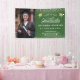 Guión de moda moderna Graduación Foto de yarda de foto para mostrar lo orgulloso que estás de tu graduación! Personaliza con tu imagen, nombre, escuela y clase favoritas, así como un mensaje de personalizado". Este diseño verde con luces de cuerda es elegante y sencillo con tapas de grad doradas impresas.