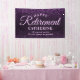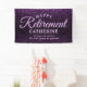 Pancarta moderna con nombre personalizado de retiro feliz con Ilustraciones festivos de confeti purpurina morado brillante. Personalice con su nombre y otras 1 ó 2 líneas de texto personalizado. Esta es la versión lila morada en negro.
