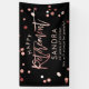 Banner de nombre personalizado de retiro feliz moderno con Ilustraciones de confeti de oro rosa impreso en festividades. Personalice con su nombre y otras 1 ó 2 líneas de texto personalizado, así como la opción de cambiar el fondo a otro color en la herramienta de diseño bajo "personalizar más adelante". Este es el oro rosa en versión negra.