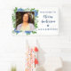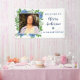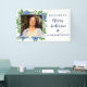 Elegante Personalizado de Hydrangea Foto 60th Birthday Party Banner es una hermosa acuarela con hortensias azules y vegetación. Puede personalizar el texto y agregar una foto.