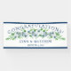 Añada este elegante Rótulo/banner de recepción de la Marina y la Felicidad Blanca a su lista de accesorios bodas. Diseñado con clústeres florales brillantes, azules y blancos, texto marino y borde naval, sobre un fondo blanco. Para personalizar, utilice nuestra plantilla sencilla para insertar sus detalles (reemplazando el texto de ejemplo). Coincidiendo con los accesorios de recepción de esta colección.