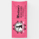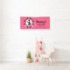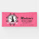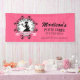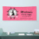 © 2019 Socialite Designs Inc. Nuestro cartel de panadería incorpora una silueta femenina, sosteniendo un quequito en una bandeja, con un elegante borde de desplazamiento y cinta. El fondo tiene un patrón rayado rosado. Todos los elementos de diseño se pueden mover o cambiar de tamaño.