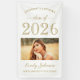 El elegante y moderno cartel de la fiesta de graduación de personalizado "Felicitaciones" presenta un esquema de color dorado y blanco con una foto del graduado. Personaliza con el nombre y la escuela del graduado. Nota: los colores de diseño se pueden personalizar para coordinar con otros colores del fiesta o de la escuela.