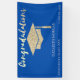 Elegante purpurina de oro gorra de graduación con fondo azul.