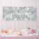 Elegante y lindo fiesta purpurinoso plateado de bokeh "Feliz cumpleaños" personalizado con el nombre del invitado de honor.