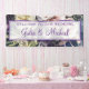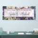 Elegante Banner de la recepción de la boda morada floral diseñado con un hermoso ramo de flores en tonos suaves de violeta con borde violeta y texto. Para personalizar, simplemente inserte su texto en nuestra plantilla sencilla, reemplazando el ejemplo. No deje de ver la colección de Bodas elegantes de color púrpura para guardar artículos de papelería y accesorios.