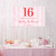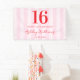 Crea tu propio banner personalizado de la fiesta de 16 años con tipografía moderna y fondo rayado de patrón rosado