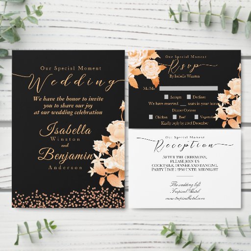 Elegant Gold Rose Black WeddingDiseñado por Caroline G.
