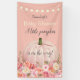 Disfruta de esta elegante ducha de bebé de otoño con flores para una niña. Rosa, corales y florales amarillos con fondo rosa rubor. Plantilla proporcionada para el nombre del honorario, y "¡Una calabaza está en camino!" texto manuscrito del guión. Luces de cuerda sobre la calabaza y la cinta en la parte superior.