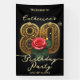 Celebre un cumpleaños número 80 con un banner tan grandioso como la ocasión. El diseño presenta un impresionante fondo negro que prepara el escenario para un magnífico "80" con filigrana dorada que se siente atemporal y lujoso. En su corazón, una sola rosa roja aterciopelada simboliza una vida llena de amor, mientras que la elegante escritura dorada para el nombre y los detalles de la fiesta añade un toque de encanto clásico. Este banner no es solo una decoración, es una pieza de declaración, un telón de fondo perfecto para una celebración de un hito.