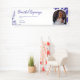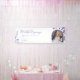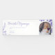 Una pancarta boda con diseños florales enmarcando las esquinas y mostrando una foto de una mujer con un vestido blanco sosteniendo un ramo de lavanda. El texto dice, "Hermosos comienzos" con una cita debajo. También se muestran los nombres Callahan & Ava y la fecha "JULY 09. 2021".