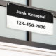 Este banner comercial tiene una plantilla de texto. Puede editarlo para crear un cartel personalizado para comercializar su negocio. La parte superior es negra con texto en blanco para llamar la atención sobre el nombre de su empresa o el servicio que ofrece. (Se muestra: Eliminación de basura) La parte inferior es blanca con texto negro para el número de teléfono u otro mensaje personalizado. Todo el texto se puede editar o eliminar.