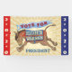 Votación por Elizabeth Warren - 2020 Presidente: Demócrata diseño de las elecciones políticas en burro : patear a burro ondeando una bandera con rayas y una estrella : tonos rojos, blanquecinos y azules con un burro marrón : fondo beige estrellado : elecciones presidenciales 2020 : mercadería de campaña para demócratas : política : equipo político : Estados Unidos : candidatos