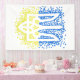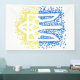 Rasgo tridente de ramo nacional ucraniano de tryzub hecho de muchos corazones dispersos azules y amarillos