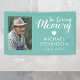 Banner funerario que presenta un fondo verde azulado que se puede cambiar a cualquier color, una foto de tu ser querido perdido y una plantilla de "en la memoria amorosa" que es fácil de personalizar.