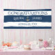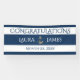 Diseñado en la Armada Náutica con franjas blancas y un ancla plateada, este banner de felicitaciones a la recepción de bodas es fácil de personalizar con los nombres de novias y novios y la fecha de Boda. Simplemente reemplace nuestro texto de ejemplo con nuestra plantilla sencilla. Es rápido y fácil. Se puede comprar con accesorios colgantes para uso exterior o interior.