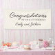 Simple banner de "Felicitaciones por tu compromiso" para la fiesta de compromiso. Texto de guión elegante (personalizable con la herramienta de diseño de Zazzle) sobre un fondo crema/blanco (también personalizable). Personalizado con los nombres de la pareja recién contratada.