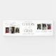 ¡Una impresionante pancarta en blanco y negro personalizado diseñada para celebrar a tu graduado! El diseño incluye una comparación fotográfica de "Entonces y ahora", que muestra seis fotos en total —tres en cada sección— capturando recuerdos apreciados desde la infancia hasta el día de graduación. En el centro, la frase "Saludos al Grado" está en una bella tipografía moderna. Los detalles personalizados incluyen el nombre del graduado, el año de graduación y la escuela, haciendo que sea especialmente diseñado para su celebración especial. © Kimbellished, LLC