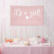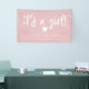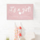 Banner moderno de una ducha de bebé rosa con una escritura con letras a mano que dice "¡es un chica!" con el corazón bajo ella. Personalizar este producto agregando el nombre de la futura madre y la fecha del evento.